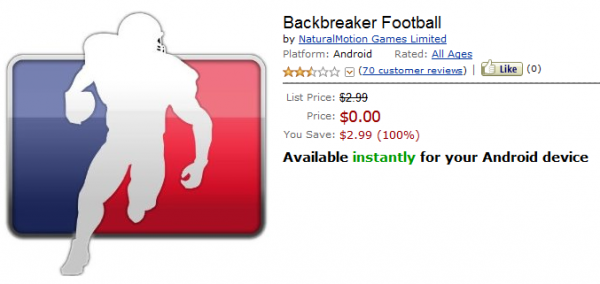Backbreaker Football is one of the original “HD” games on Android and can be had today from Amazon for FREE. Normally priced at $2.99, this is a game that will give you some instant satisfaction as a football fan or even just someone that loves getting crushed while holding a football. Might as well grab and give it a good 10 minutes at least; you’ll more than likely get a few laughs out of it when your head gets knocked off while showing-boating at the 2.