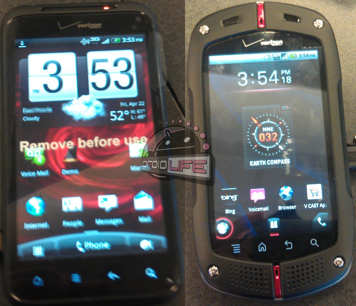 Live demo units! And retail packaging! (Maybe) That’s right, the DROID Incredible 2 and the manly Casio G’z0ne are in stores awaiting their April 28 launch. And actually, you could probably sneak into a store this weekend and coerce a VZW employee into letting you play with one if you can’t wait another 6 days.