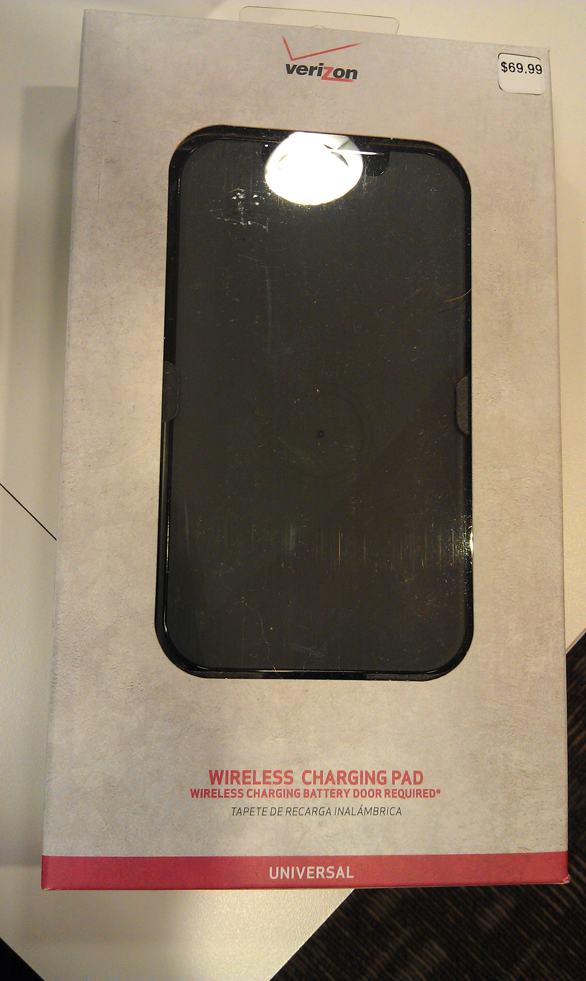 We’ve know for a few weeks now that wireless charging was about to take over Verizon’s Android lineup, but with battery covers arriving in stores this week along with the actual pad that they will charge on, we might be days away. Thanks to our homie TheDroidGuy, we now know that in order to enjoy wireless powering juice, you’ll have to start with the $69.99 pad that you are seeing above, and then fork out anywhere from $29.99-$39.99 for the battery cover for your specific phone. Is wireless charging worth $100?