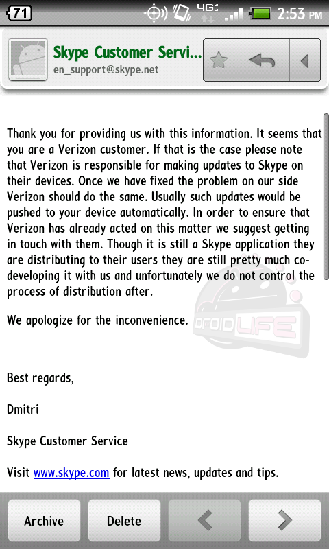 According to the email you are seeing above from a Skype CSR, that is most definitely the case. Skype creates and finishes the different versions of their apps and then Big Red gets to decide when they are released. Since they have a massive partnership that began last February, we shouldn’t be all that surprised by this, but we’re just wondering what the hold up is at this point.