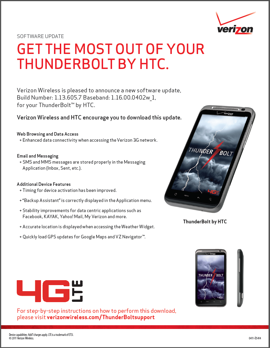 We were wondering when Verizon was going to ready this update for the HTC Thunderbolt as it has been in the works and talked about behind the scenes for weeks now. The update is 22.28MB and will enhance connectivity to Big Red’s 3G network and also help load times for GPS updates on Google Maps. There are some other minor bug fixes in there for SMS and such, but the connectivity is huge.