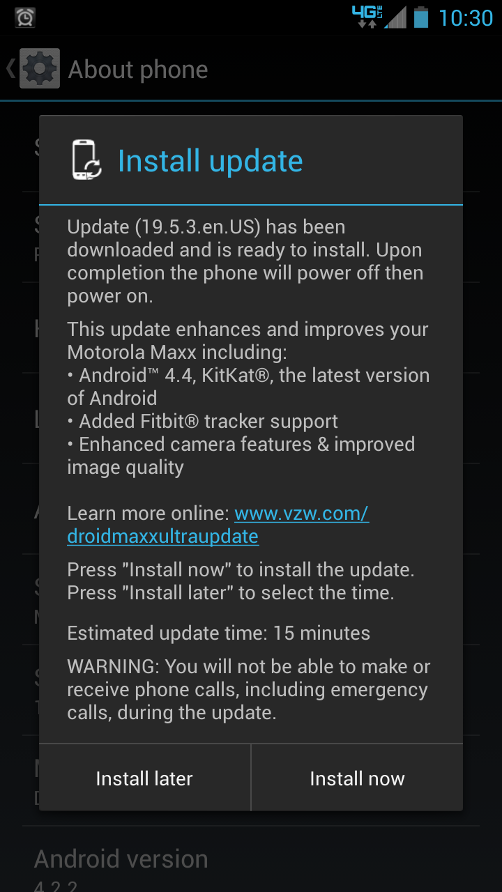 Since we don’t have an ULTRA or MAXX in house, this is where we ask you, dear reader. If you have not yet installed the Kit Kat update on your new DROID device, are you seeing an update when heading into Settings>About phone>Software update?