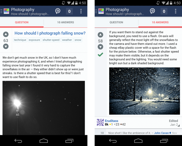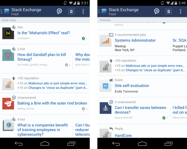 Stack Exchange, one of the best Q&A spots on the entire internet, released a beautiful Android app to Google Play this week. It brings all of the goodness of Stack Exchange right to your phone. You can pick from the 100+ communities that include everything from beer making to travel to Android, ask questions, receive answers from experts, and more than likely learn something along the way. Stack Exchange started out as a place for development and mostly geek type topics, but has grown into a Q&A community that covers almost any topic you can think of that you might need help with.