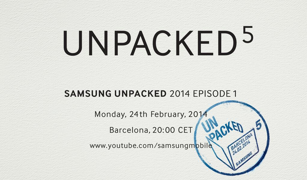 This afternoon, Samsung sent us an invitation to their next big event, titled “Unpacked 5.” The event takes place on February 24 in Barcelona, Spain, the week of Mobile World Congress. While nothing is confirmed on the invitation, the unveiling of the Galaxy S5 seems likely. Why else would there be a “5” next to “Unpacked” if this is only episode 1 of the Unpacked series?