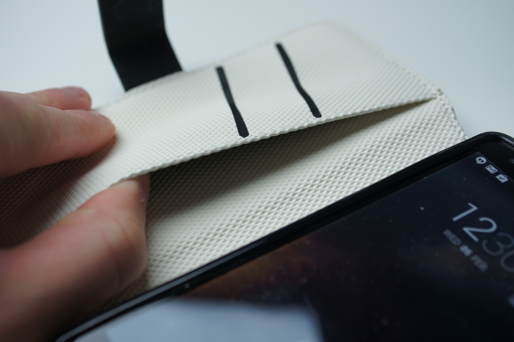 The next feature we need to showcase is the wallet aspect. On the inside left fold there is a slot for credit cards, as well as a slot for cash or whatever else you can fit in there. The case can essentially allow you to leave your regular wallet sitting at home, as this case looks to take over its job. Finally, the folds on the case are magnetic, which means the flap won’t go dangling around at unwanted times. The magnet is strong too, and since you would use it as a wallet, we don’t need to concern ourselves about our cash falling out all over the place.