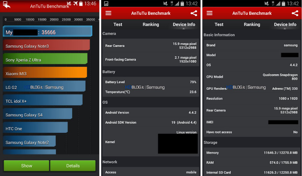 Another thing to point out are the reports of a 16MP rear-facing camera, as they appear to be in line with the benchmarks, and no other info out there has contradicted that. In the speed tests, the device used beats out the Galaxy Note 3 (Snapdragon 800 w/ 3GB of RAM), the LG G2 (Snapdragon 800 w/ 2GB of RAM), and the Sony Xperia Z Ultra (Snapdragon 800 w/ 2GB of RAM). So in terms of performance, we should see something quite impressive from Samsung, regardless of a crazy high resolution display.