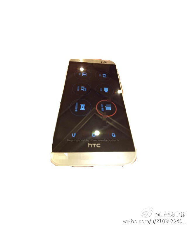 Next, we have another look at the on-screen navigation buttons that @evleaks showed us last week. You can see them turning as the phone is taken from landscape to portrait. Outside of that news, we can see a black bar that hosts an “HTC” logo. That worries me a bit if you are thinking about the massive bezel situation on the original One, something that seems to be in play if the images of the front of the device below are real. Side bezels seem somewhat slimmed, but the top and chin of the device still look massive thanks to black areas and the dual BoomSound speakers.