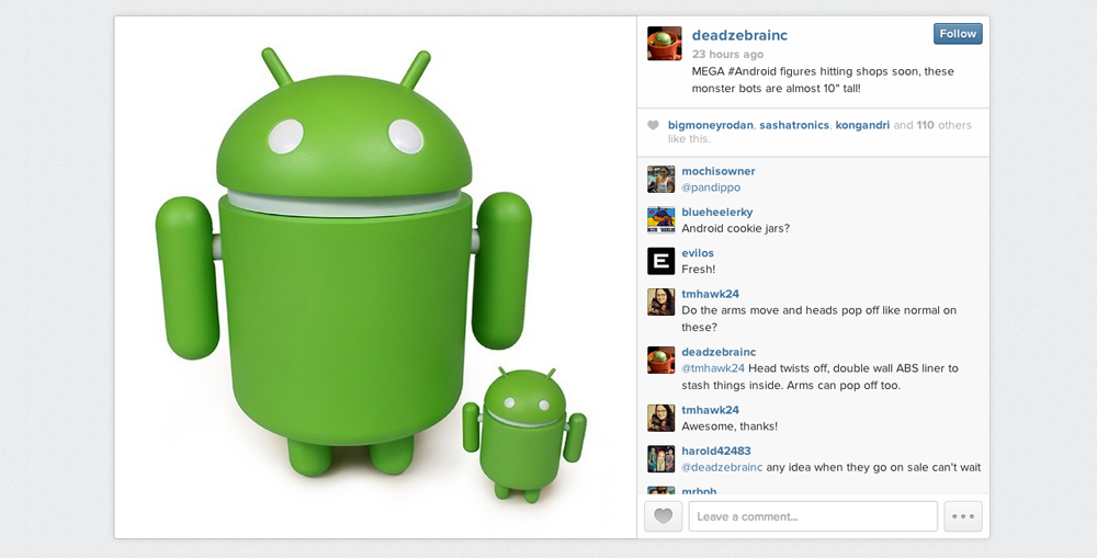 The new larger size costs $69.99 in Android green, but you can also get your hands on a blank Android and decorate it yourself for $5 less. Below are a few of the many websites that are selling these oversized Androids.