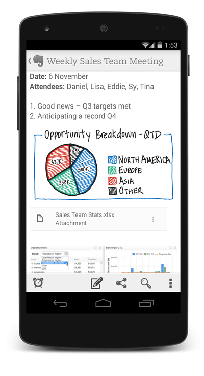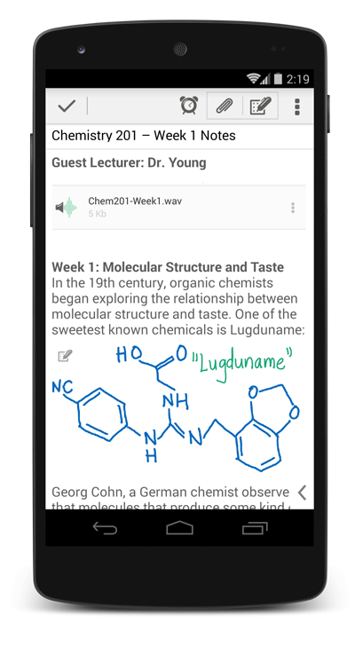 As you can see in the screenshots below and the embedded video, this is more than a separate handwriting add-on. Evernote wanted you to be able to go “from writing to typing to taking photos and back all within a single note.” So if you are recording a lecture, you can still type out notes and then switch to handwriting to draw examples, charts, or boredom-laden smiley faces.