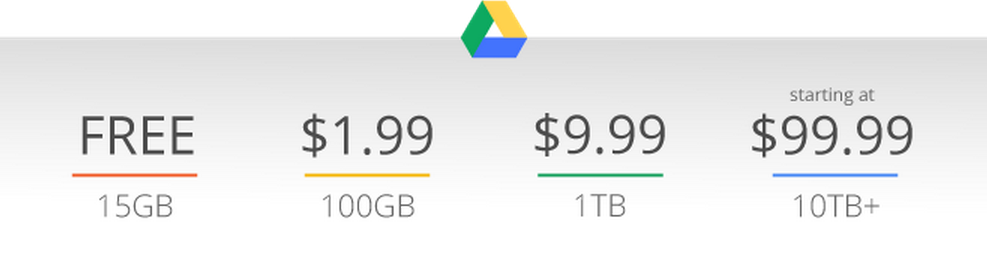 All Google accounts get 15GB of free space when they use Drive, but all of the other tiers have been lowered in price. 1TB of cloud storage will only run you $9.99 per month, and if you need a ridiculous amount of space, 100TB and up starts at $99.99.