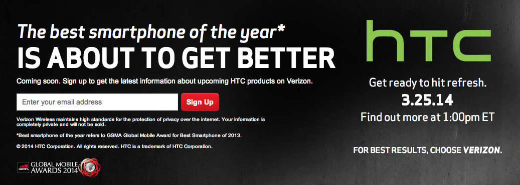 Last week, we first reported that Verizon would more than likely be selling the “All New HTC One” shortly after HTC announces it at a press event tomorrow in New York City. The day following our report, Big Red stores began posting signage that hinted at customers wanting to “hit refresh” at 1PM Eastern (10AM Pacific) on the 25th, all but confirming the phone’s availability, if anything, through online sales.