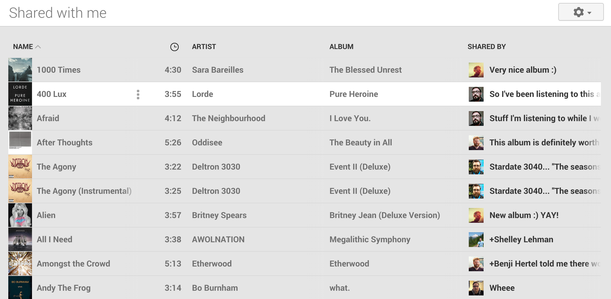 Google has a built-in sharing feature with Play Music, but it centers around Google+. When I’m in the mood to listen to music, I want to be browsing in the Play Music library, not the pages of Google+. The only thing that comes close to sharing within the Play Music web portal is the “Shared with me” section, which is incredibly cluttered and unusable for exploring what your friends are listening to.