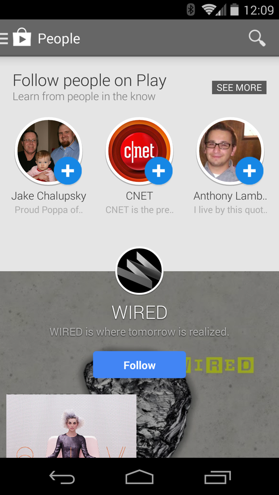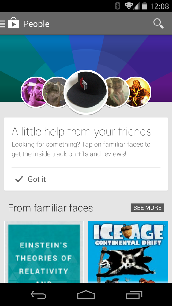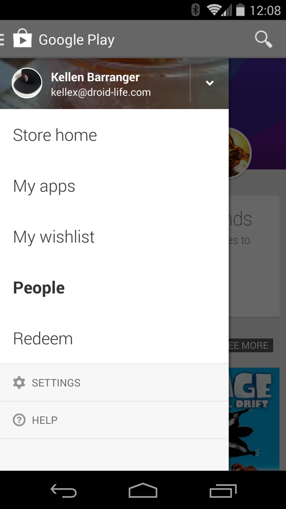 If you are still running version 4.6.17 of Google Play on your phone or tablet (and you are because it’s the newest), swipe out the navigation menu and see if you notice anything new. See it? That would be the new “People” section that just went live.
