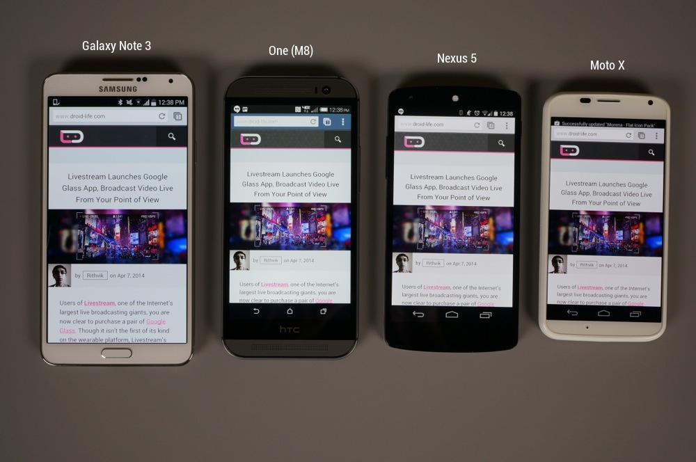 I’d argue that the AMOLED on the Galaxy Note 3 is still the best display on the market (until the Galaxy S5 is released in a few days), but the LCD used the One (M8) is no slouch. As you can see from the images above, it’s not only brighter than the Note 3, Nexus 5 and Moto X, but at a steep viewing angle, it’s probably the clearest.