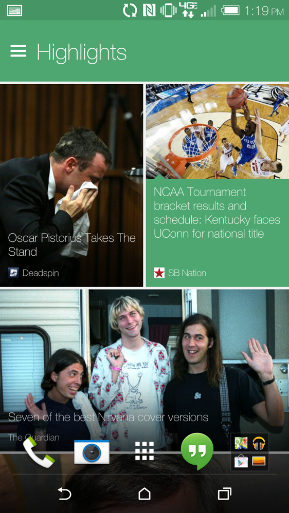 HTC’s Sense is no longer a bad Android skin. Actually, it’s pretty good for the most part. HTC has flattened the UI substantially, so it’s much more modern than ever before in version 6.0. BlinkFeed – my guilty pleasure – is back again, with more features and a better appearance. HTC added really useful Motion Launch gestures to the device, all of which can be used to activate the phone in some way without ever touching the awkwardly placed power button. HTC has a really great gallery app that can be used to create Highlights, videos of special occasions, parties, trips, or photo shoots. And their TV app is also one of the better in the business.
