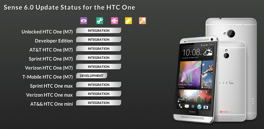 All variants of the One (M7) are listed for the Sense 6 update, as well as variants of the One Max and One Mini. If you have a stake in any of these devices – meaning you happen to own one – check the status page every now and then to see just how far along HTC is with its progress.