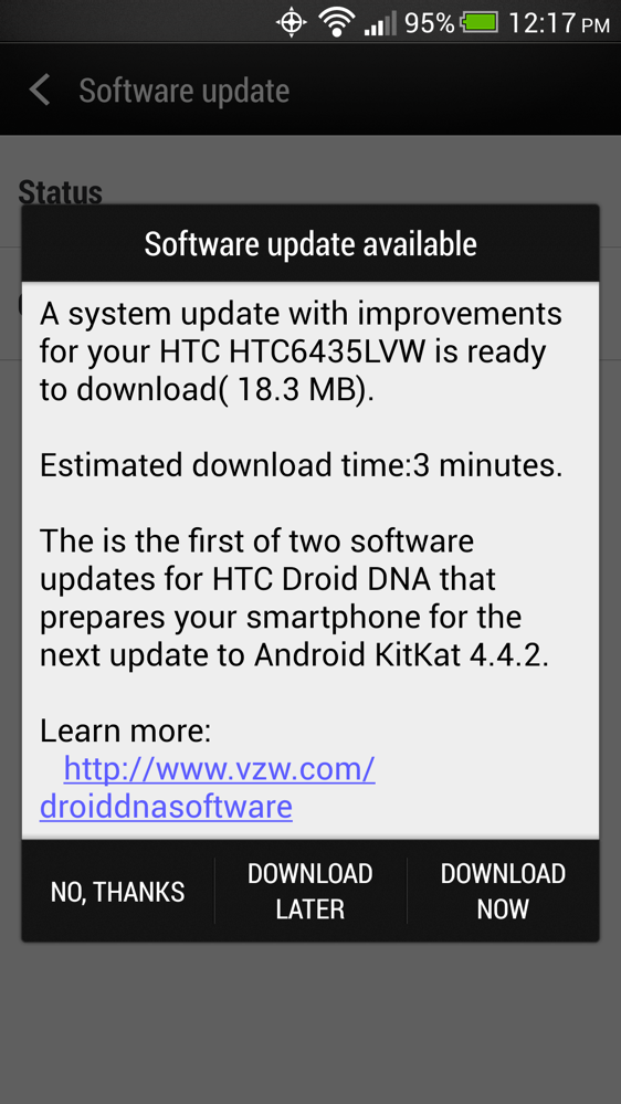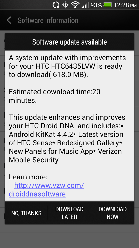 On Tuesday, HTC told us to expect the Android 4.4.2 with Sense 5.5 update for the DROID DNA on Verizon as early as today, April 24. They appear to be spot on with their timeline, as Verizon has now posted the full changelog for the update, a list that includes talk of BlinkFeed enhancements, a redesigned gallery and music apps, better lock screen controls, advanced location management (thanks to Kit Kat), and more.