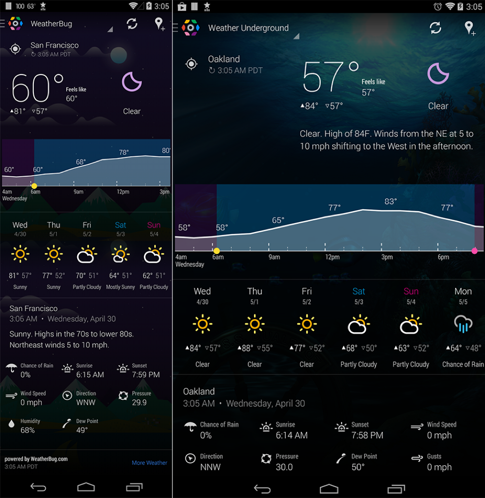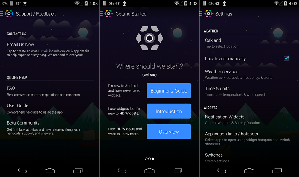 On a UI front, the app now features a slideout menu to make it “ready for Kit Kat and later.” The new slideout menu has sections for active widgets, theme packs, tools/settings, weather locations, guides, and links to other resources. You will also see a new weather screen with a bunch of info above the fold like current conditions, hourly forecast graphs, and daily forecasts.