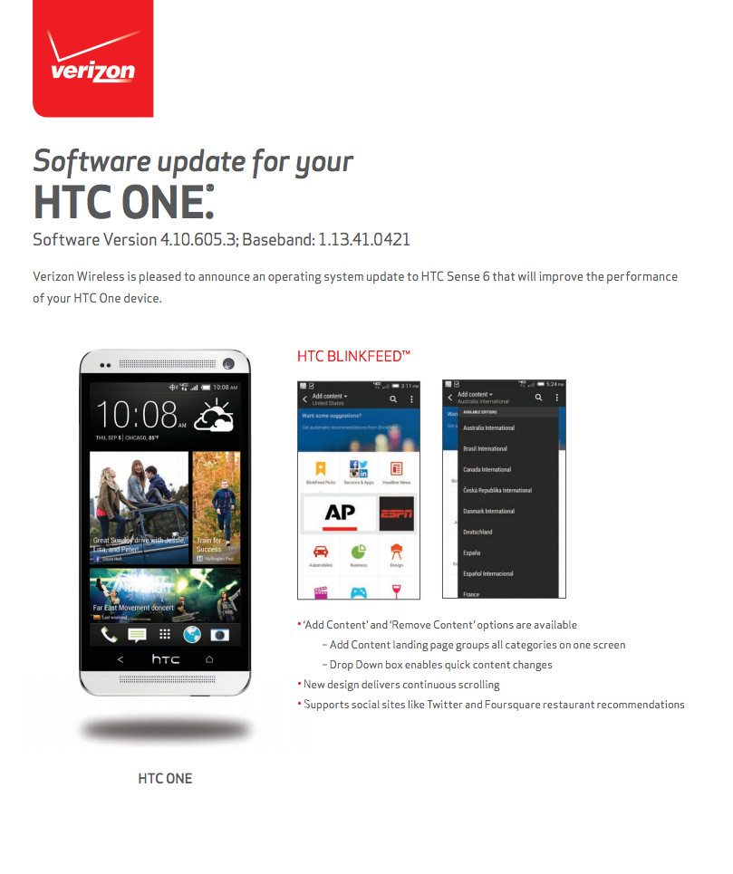 As we reported on yesterday, the update to Verizon’s HTC One (M7) is rolling out to devices starting today and over the next few days. This brings the device up to Software Version 4.10.605.3 and includes Sense 6.0 along with some other bug fixes and improvements.