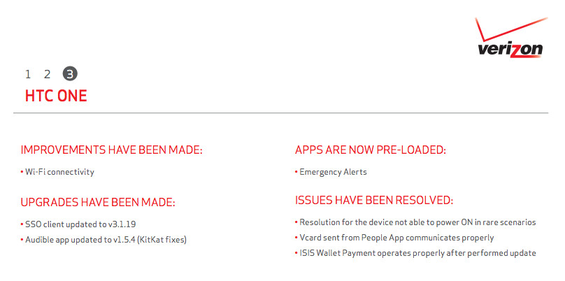 Big improvements to BlinkFeed, refinements to the overall user interface of the phone and other new features will be a welcome sight for owners of this phone. Bug fixes include addressing the WiFi connectivity and ISIS wallet are also in the downloads. Verizon and HTC patched up some other odds and ends, but the headliner of this update will be Sense 6.0 bringing new life to last year’s flagship.