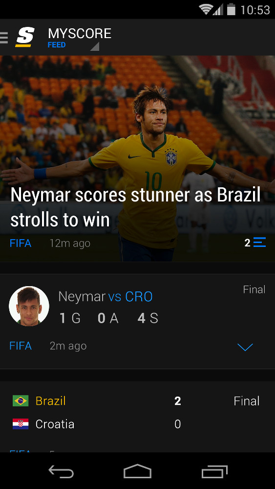 - Data and news from their favorite games, teams and players will automatically appear and be updated in real-time as each game plays out in their very own personalized Feed, which is found in My Score.