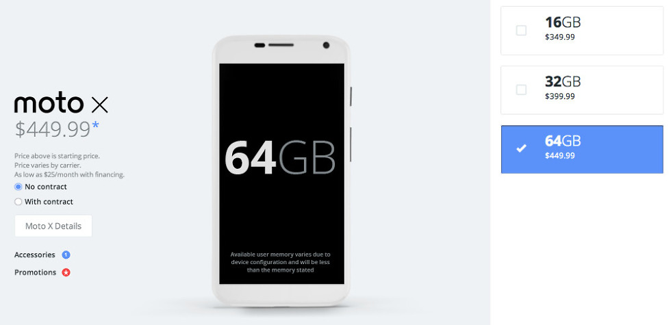 We now have three pricing tiers for the Moto X of 16GB for $349, 32GB for $399, and 64GB for $449. Even at $449, the Moto X with 64GB is still quite the reasonable price. Most other flagships, even ones from last year, retail with no contract above that.