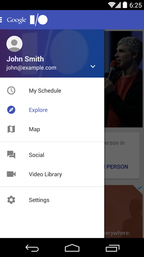 The official Google I/O app received an update today for this year’s 2014 conference. The update introduces an updated design, with a bold blue top bar, slideout menu, and a look that Google fanboys should be familiar with. As Google noted in the updated app listing, this app was “built to be your co-pilot” at the conference.