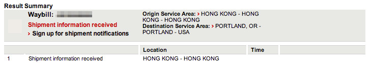 We do not have a confirmation on arrival time, but as you can see, our order in particular is coming straight from Hong Kong, en route to Portland.