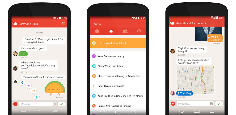 Path Talk has this neat feature called “Ambient Status” that automatically tells your friends when you are in transit, nearby, or low on battery, so that they know if they should contact you or leave you be. It also makes sending music, maps, and photos easy, allows you to quickly reply to people with a single swipe, and can do voice messages (hear that, Hangouts?).