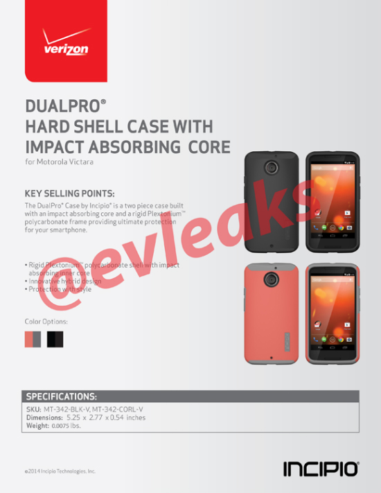 This morning, thanks to another leak from @evleaks, the exact source of yesterday’s render is now known. As we can see in the full image below, this case is designed for Verizon’s Motorola “Victara,” which has been a standing codename for the Moto X+1.