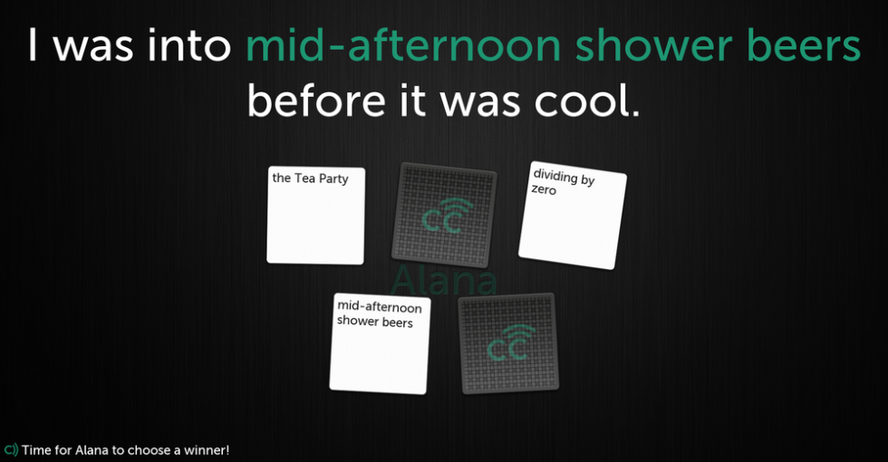 The app couldn’t be more simple. To start, up to ten players can connect to a single Chromecast for playing a game. A respectable library of popular decks, among them Cards Against Humanity and Apples to Apples, are available for download through the Cardcast website. For those unfamiliar with how those games play, a single “judge” player reads out a topic or subject card, then the rest of the players submit answer or related cards, usually resulting in humorous situations. The judge then choose a winner, and the judge position rotates to the next player.