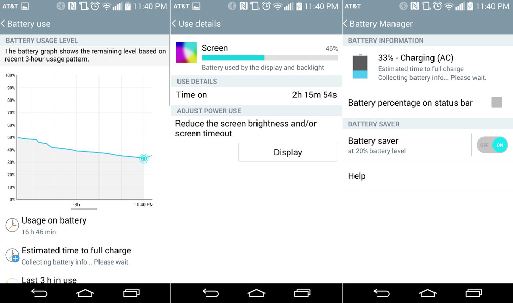 In my time with the G3 (the AT&T model), using a mixture of data and WiFi in both Montana and Portland, OR, I regularly find myself plugging the phone in at night with over 30% of the battery remaining. So we are talking at least 15 hours of usage, with over two hours of screen-on time, yet no need to plug-in the phone at all during the day. The only other phone I have ever used with battery life like this, is the OnePlus One, which seems to be a master of life in the battery department. Over the past week, the G3 has only had to warn me at the 20% mark two times. And so you know, at 20%, Battery Saver kicks in to make sure that your last 20% lasts for hours until you can find a charger.