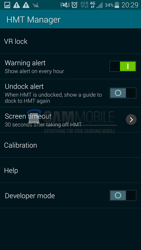 From what we can see in the screenshots of the Gear VR Manager application, the Gear VR will feature a few notable tricks. If these screenshots are legit, then we can expect the headset to feature Samsung’s S-Voice software, a see-thru display (when you need it to be), full touch capability with a touchpad, and a complete settings menu for alerts, calibration, and screen timeout.