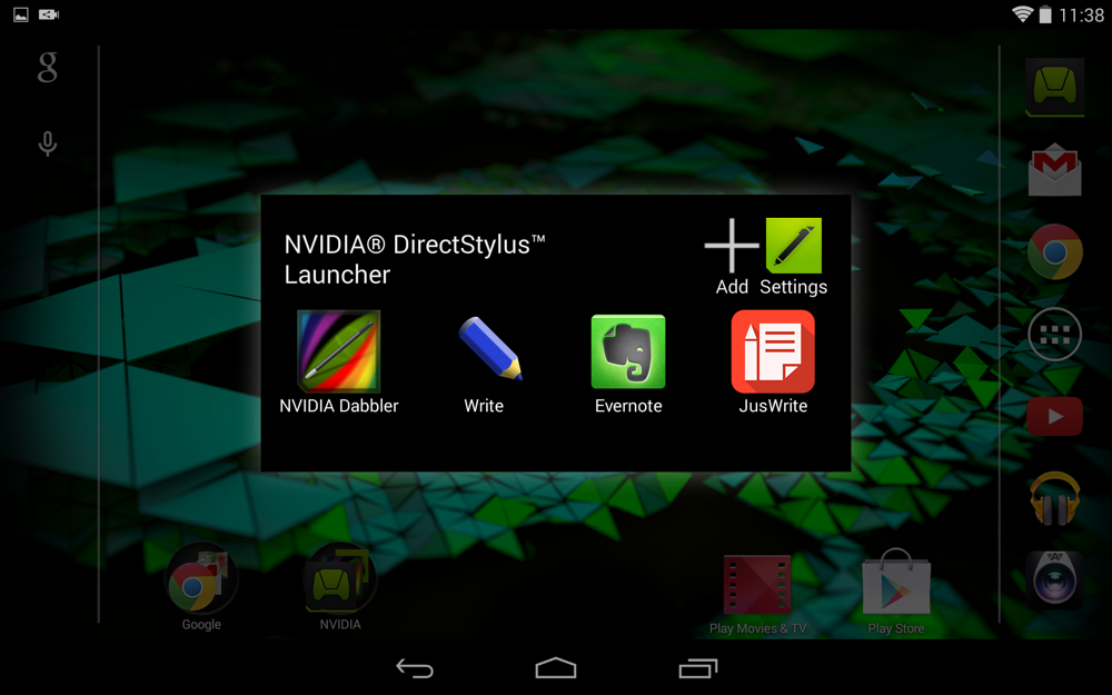 There is no doubt that NVIDIA loves Android. Why else would they ship their hardware running stock Android, coupled with minor proprietary tweaks? Android as an OS is a strong mobile gaming platform, with NVIDIA only looking to make it stronger, while also capitalizing on it a bit. While keeping all baked-in applications to a minimum, the ones that NVIDIA does include are quite useful, including all of the SHIELD applications, a free copy of Trine 2, handwriting software for DirectStylus 2.0 (which we get into below), and the built-in Twitch integration. The software on SHIELD Tablet is an awesome package, full of value, which is also easy to navigate since it is stock Android. Everyone knows we are quite fond of stock Android, but there are certain companies that add in functional tweaks – such as Motorola – which make stock Android even better. NVIDIA has done that on the SHIELD Tablet. For that, we congratulate NVIDIA with a heartfelt golf clap.