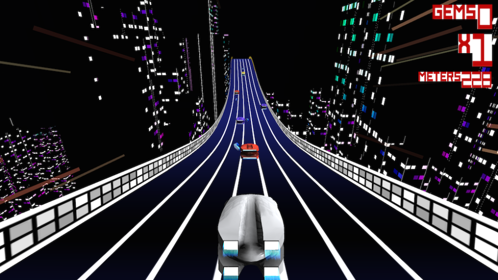The game brings other titles to mind, movies and games included. To me, its essence feels somewhat rooted in TRON, with hints of Impossible Road tied in. As the road twists and curves, your head almost feels forced to move along with it, dodging traffic and taking in the darkened cityscape. It’s a very enjoyable racing experience.