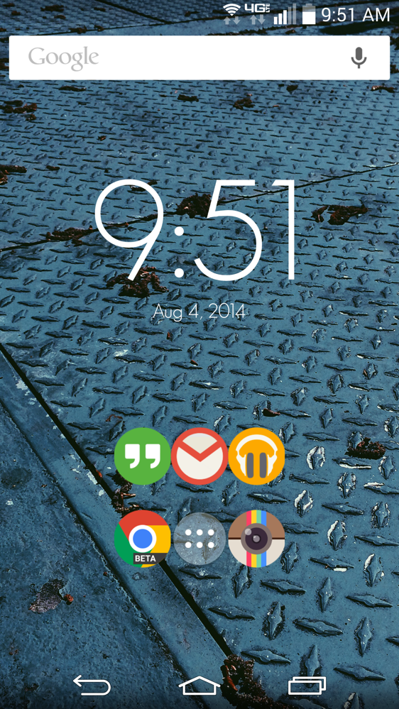 Kyle is using Nova Launcher with the Moonshine icon pack. His wallpaper is from the Android L preview build.