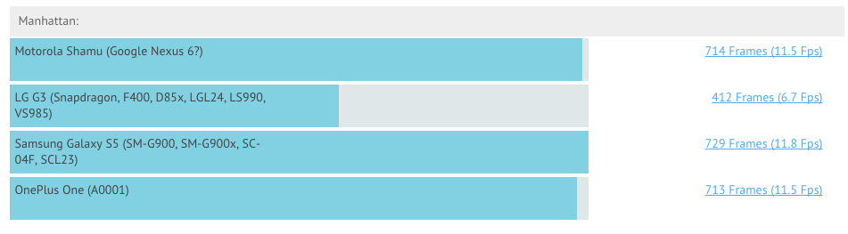 Oh, here is how the “Motorola Shamu (Google Nexus 6?)” measures up to the competition in at least one benchmark.