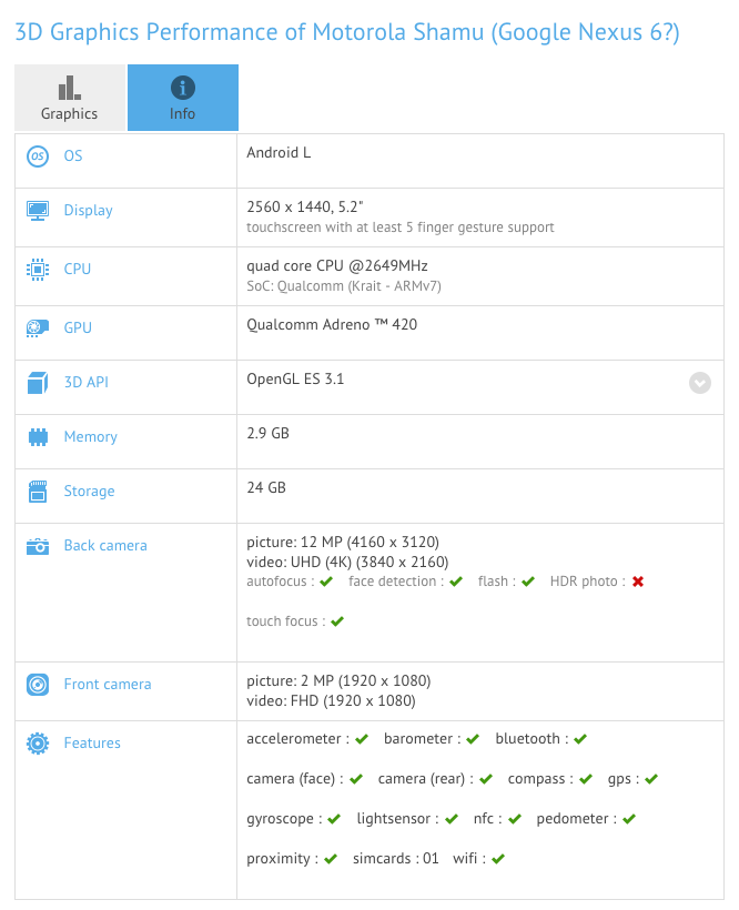 A benchmark at GFXBench got this whole thing started yesterday when a device under the name “Motorola Shamu (Google Nexus 6?)” showed up. If the question mark in the name doesn’t scream “questionable” and “WTF? Since when do benchmarks have question marks in their names?” then feel free to proceed.