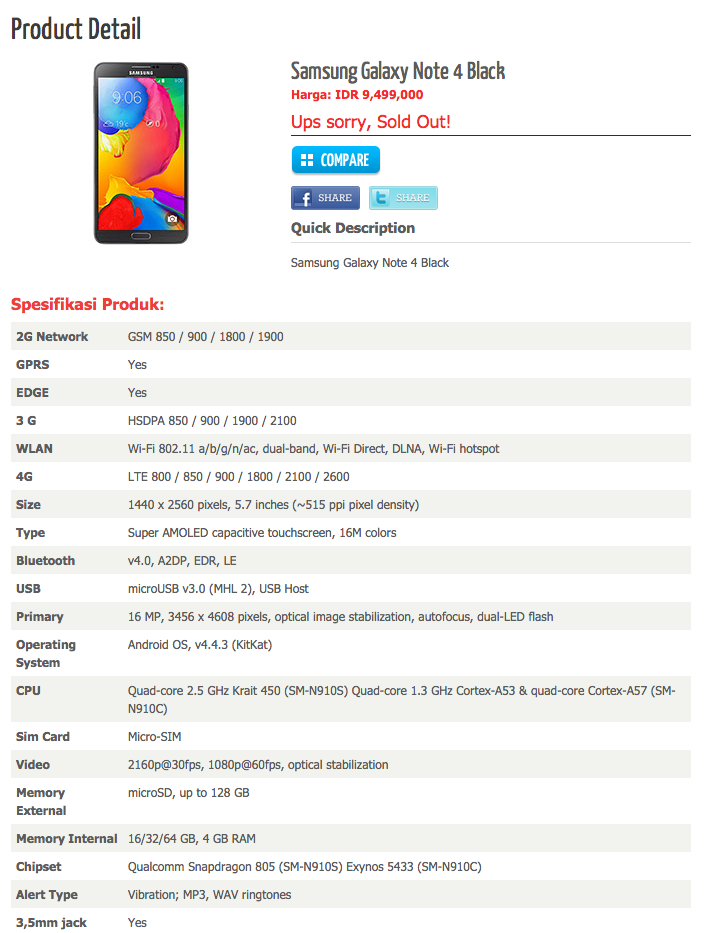 From what is listed, the Galaxy Note 4 should in fact come equipped with a 5.7″ QHD display (2560 x 1440), 16MP rear-facing camera, Qualcomm-made Snapdragon 805 quad-core processor, 4GB of RAM(!), USB 3.0 port, Bluetooth 4.0, microSD slot, come in 16/32/64GB variants, and run Android 4.4.3 on launch. However, still no word on battery size.