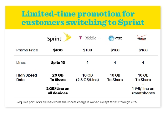On Friday, Sprint’s new CEO, Marcelo Claure, said during a company-wide town hall that we should expect major pricing changes for his company’s wireless plans come today. He has delivered by announcing that Sprint will now offer a family share data plan with up to 10 lines and 20GB of data for $100 (line access charges gone through 2015). For that amount of data, you are looking at prices that certainly cut under AT&T and Verizon.