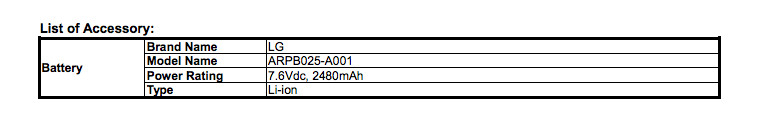 The device falls under FCC ID A4R-NX74751, in case you want to go digging through the listing. It features some sort of NVIDIA Tegra chip, global roaming with LTE (bands 2, 4, 5, 7, and 17), and an LG-made battery that only weighs in at 2,480mAh.