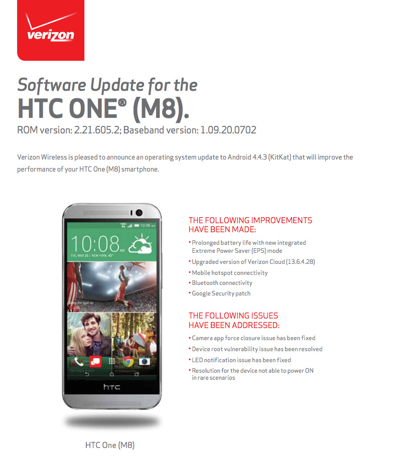 Along with EPS, the device has improved hotspot and Bluetooth connectivity. HTC and Verizon also tossed in a Google Security patch – I think you know what that means. In terms of bug fixing, the camera app is more stable, as are LED notifications. Oh, Verizon also mentions in their changelog that a “device root vulnerability issue has been resolved.”