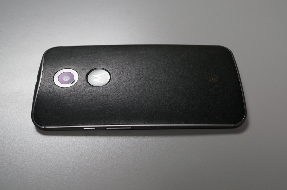 I absolutely love the design of the new Moto X. Aside from it growing in size because of its 5.2-inch display and Motorola tossing in a really awkward-looking “M” logo on the back that looks like a button or a token for an arcade game, there is nothing I would change about the appearance. It fits perfectly in your hand, just like last year’s model did, thanks to special care taken by Motorola. If you go with a leather back, it feels soft and pillowy in hand. The metal frame makes the device both look and feel very high-end, something that couldn’t be said on the original. Even the massive, clear camera ring and housing is growing on me at this point. The glass on the front of the device cascades around all edges, so as you swipe across it, your finger feels nothing but smooth bliss. The buttons on the side of the device are perfectly placed, with the power button now having texture to help you separate it from the volume rocker. The speakers looked a bit awkward at first, but now I see that they are extensions of the design used in the side buttons and actually fit the whole scheme very well, especially with their slight sparkle.