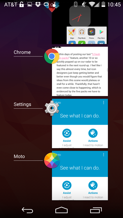 We love Motorola’s approach to software. They give you stock Android first (with the Google Now Launcher this time), but then add-on a bunch of really useful software features that complement the experience. Motorola’s mindset behind software is to not ruin the good thing that stock Android has going – they just want to include features that you can use alongside it that no one else is doing.
