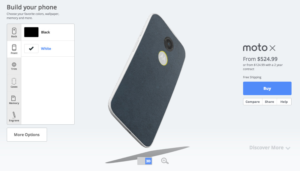 Moto Maker also brings back storage options of 16GB or 32GB, along with black or white front panels which are surrounded by either dark grey metal or lighter silver metal, respectively. There are 10 trim colors, specially made cases to help show off your design, boot-up messages, engraving, pre-set matching wallpapers, and an option to choose which color charger is included. It was the coolest smartphone tool last year, yet only managed to get even cooler this year.