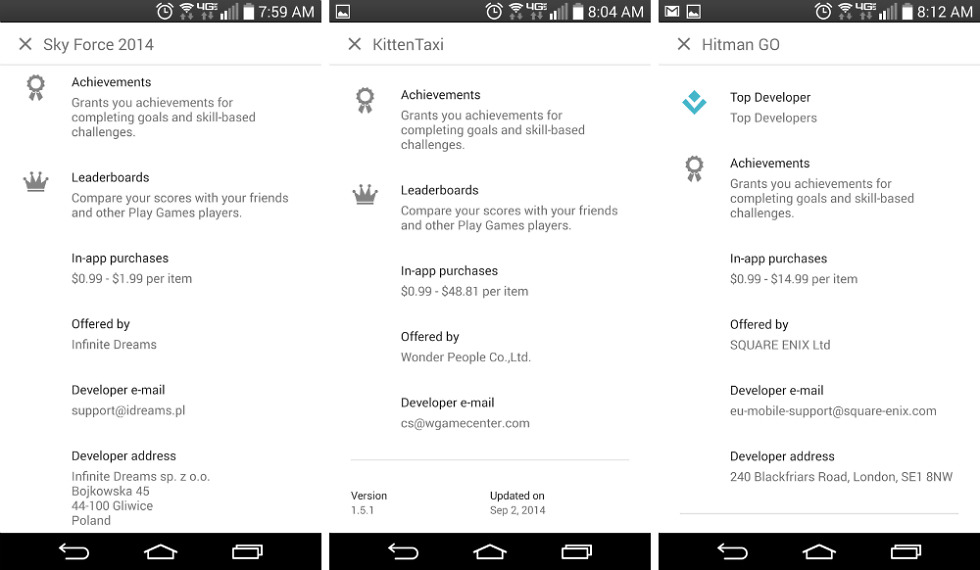 Besides that depressing matter, Google is also listing in-app price ranges, detailing just how much you can spend inside of an application. To us, this is a great idea, just so users can see how ridiculous a few companies are with their IAPs. Please, no one should spend $99 on Candy Crush or $50 on Kitten Taxi. It’s ridiculous to my eyes. Go donate to charity instead.