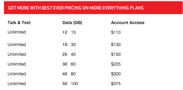 The list of data plan changes can be seen below, with most seeing double their current buckets. For example, the 20GB plan now has 40GB of data for $150, same as the 30GB, 40GB, and 50GB plans which are now 60GB ($225), 80GB ($300), and 100GB ($375), respectively. Plans not seeing a full double data match are the 12GB (jumping to 15GB) and 16GB plans (jumping to 30GB).