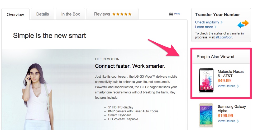 Also, if you cruise through to the LG G3 Vigor listing on AT&T’s site, that is where you see the image at the top of this post, which actually says “Motorola Nexus 6” in the recently viewed section.