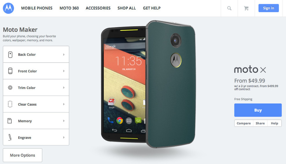 Today through October 20, Motorola is hosting a deal on the Moto X (2nd gen) for Verizon that will save you $50 on a new 2-year contract. At $49.99, you can custom make the new Moto X cheaper than any other model. Full Moto Maker customizations are available as well at no charge, outside of the Natural and Leather backs that each carry a $25 premium. Still, this is the lowest price you will likely find unless you buy it through Amazon, but then you wouldn’t be able to customize it.