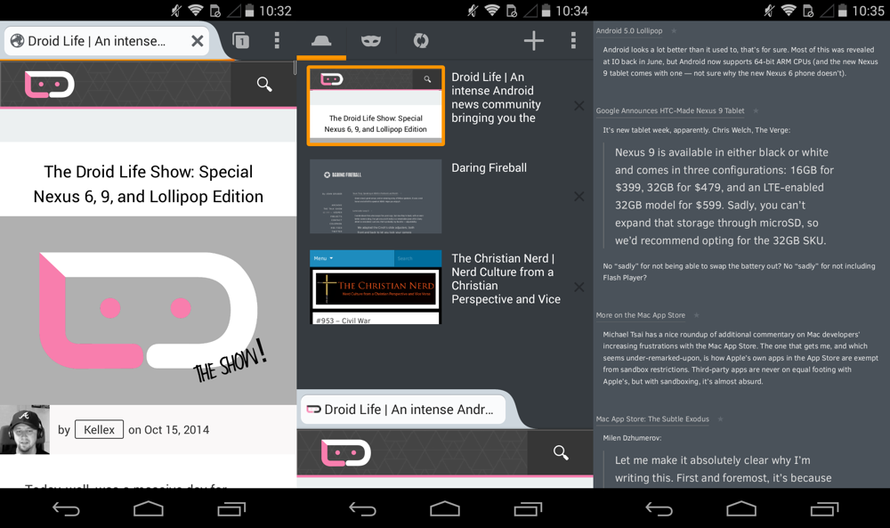 I love Safari on iOS. There, I said it. Sure, I could use Chrome and sync my tabs and favorites, but I really don’t use those on my phone. Most importantly, Chrome has never performed well for me (on iOS or Android). Firefox, on the other hand, works well. I’m not a huge fan on Firefox’s open tab view, but I do love that it renders pages quickly, scrolls responsively, and most importantly, knows how to double tap to zoom over text properly. If you haven’t tried Firefox in a while, give it a shot (I wrote up a lengthier review of its last major overhall here).